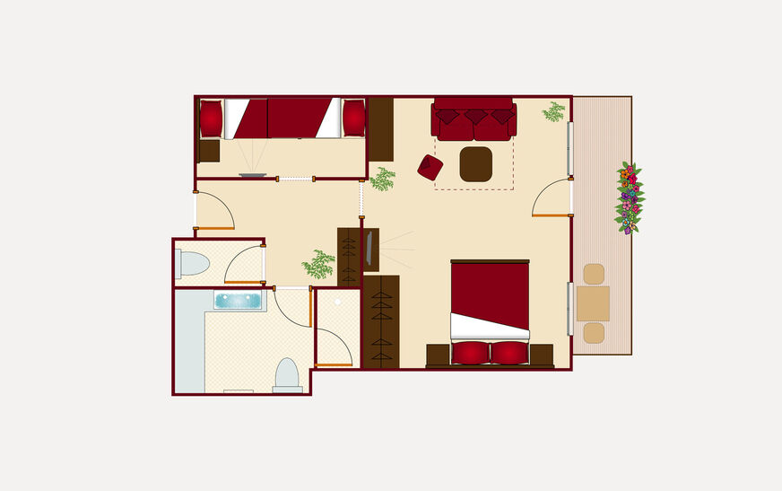 A new, cozy furnished suite with larch wood, living room and bedroom, separate children's room for 2-6 persons 50m²